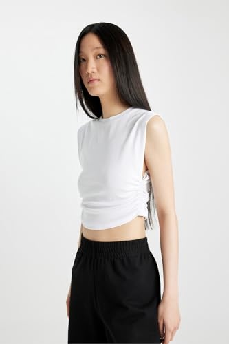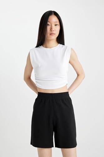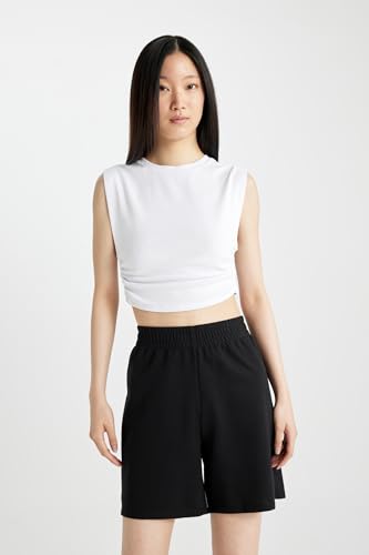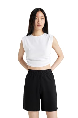 DeFacto - تيشرت محبوك بأكمام قصيرة ورقبة دائرية ضيقة وقصة ضيقة سليم فت للنساء من ديفاكتو، طراز A9420AX