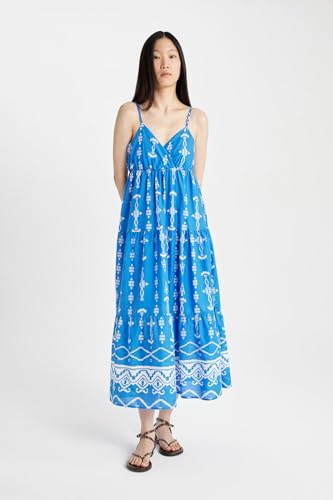 DeFacto - فستان منسوج بأكمام قصيرة ورقبة على شكل V للنساء من ديفاكتو - C4871AX
