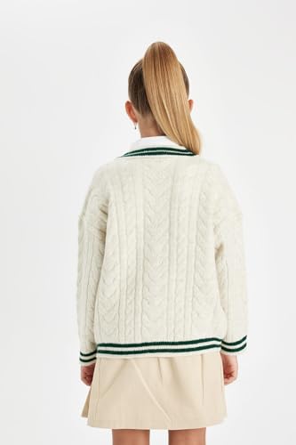 DeFacto - DeFacto womens Tricot Standart Fit V Neck Long Sleeve C6926A8 Cardigan Sweater