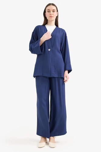 DeFacto - بنطلون للنساء سي ان اس منسوج بأرجل واسعة، E7978AX من ديفاكتو
