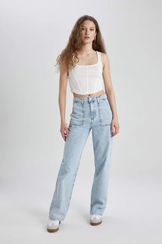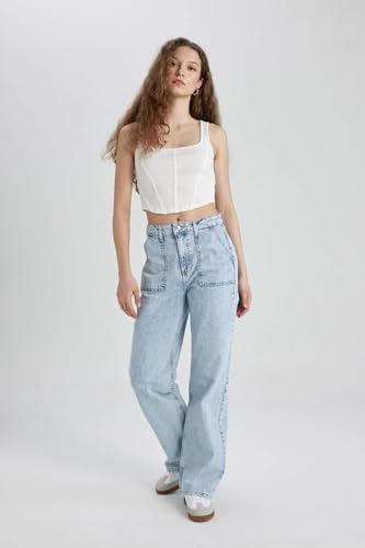 DeFacto - بنطلون جينز كارجو للنساء بأرجل واسعة من ديفاكتو B8249AX