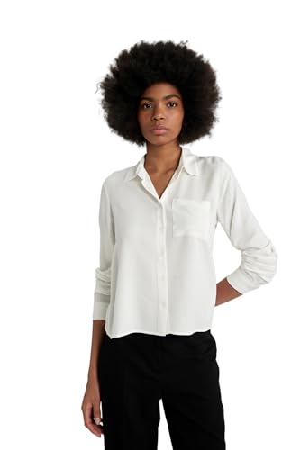 DeFacto - بلوزة توب أنيقة من نسيج محبوك بقصة عادية وياقة قميص وأكمام طويلة للنساء ديفاكتو موديل W3614AZ