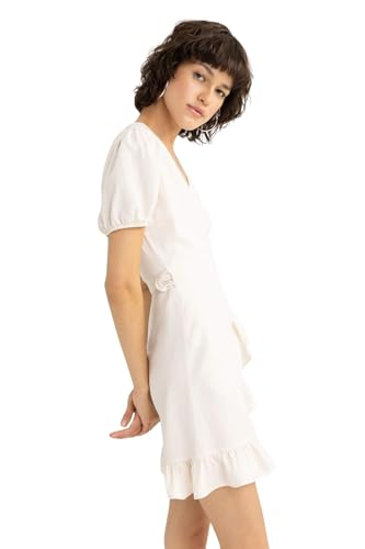 DeFacto - فستان بأكمام قصيرة وتصميم ملفوف B1299AX للنساء من ديفاكتو نسيج محبوك