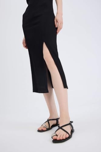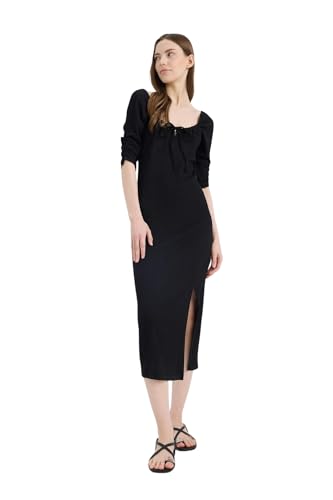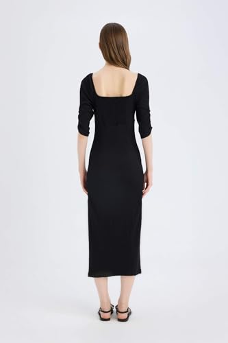DeFacto - فستان ضيق منسوج للنساء والشابات برقبة مربعة وكم ثلاثة أرباع، جيبة وفستان بأكمام طويلة من ديفاكتو، (عبوة من قطعة واحدة)