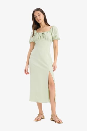 DeFacto - فستان من نسيج محبوك بقصة ضيقة من الأعلى وواسعة من الأسفل بأكمام قصيرة ورقبة على شكل حرف V للنساء من ديفاكتو، قطعة واحدة