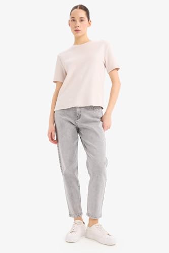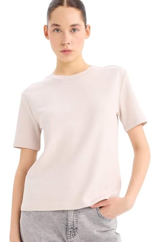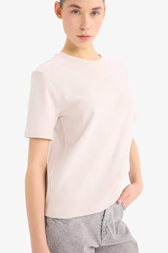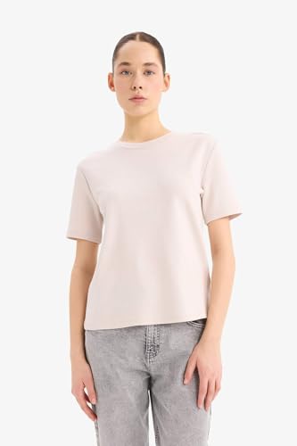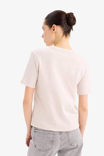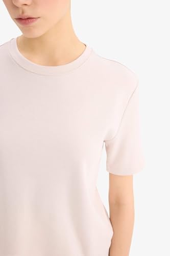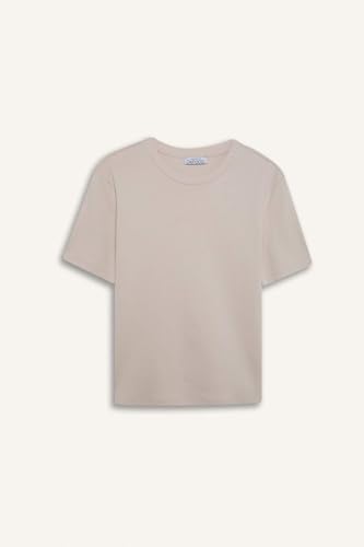 DeFacto - تي شيرت قصير الاكمام محبوك باكمام قصيرة ورقبة دائرية ضيقة وقصة عادية للنساء الشابات من ديفاكتو