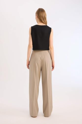 DeFacto - بنطلون مصنوع من نسيج محبوك بقصة مستقيمة للنساء الشابات من ديفاكتو (عبوة من قطعة واحدة)