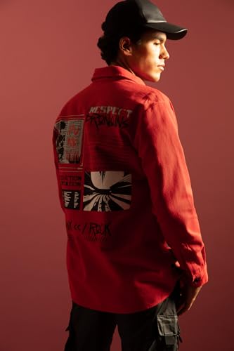 DeFacto - قميص يونج دينيم بقصة مريحة وأكمام طويلة من ديفاكتو، لون أحمر RD296 مقاس S موديل Y9738Az، الرجال