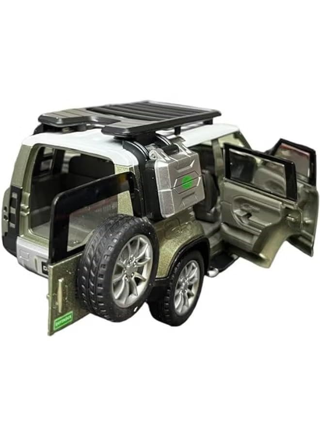 - نسخة أصلية: نموذج مصبوب مفصل للغاية لسيارة لاند روفر ديفندر يتميز بتصميم خارجي واقعي بنسب دقيقة ولمسة نهائية خضراء معدنية ممتازة