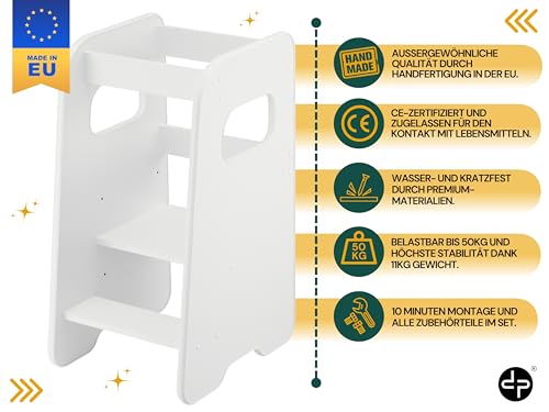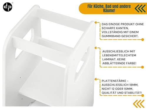 defiPad - برج تعليمي للاطفال KH_80_50_W من ديفي باد، برج تعليمي انيق للحماية من الميل بارتفاع قابل للتعديل واعلى امان من سنة واحدة، مساعد صغير ابيض 80 × 50 × 40 سم