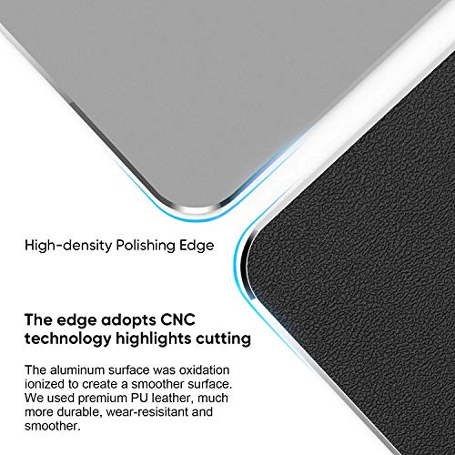 Defsedar - قاعدة ماوس من ديفسدار، قاعدة ماوس ألومنيوم معدنية صلبة، ممتازة مزدوجة الجانب مقاومة للماء سريعة ودقيقة للتحكم في المكتب والمنزل والألعاب 22 × 18 سم (رمادي)
