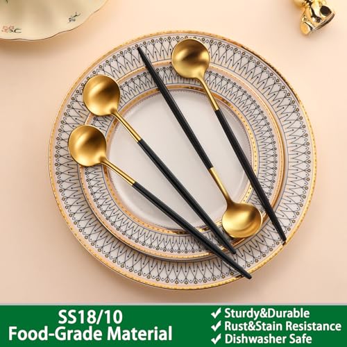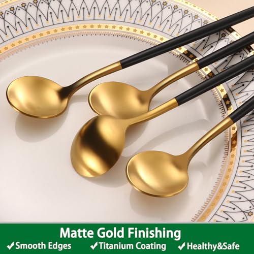 - لمسة نهائية غير لامعة وحواف ناعمة: مع أكثر من 14 مرة من التلميع اليدوي الدقيق للغاية، كل ملعقة مصنوعة من الساتان الحريري اللامع والحواف ناعمة. والطلاء الأسود من التيتانيوم PVD، وهو مقبض صديق للجسم، يمكنك استخدامه دون قلق.