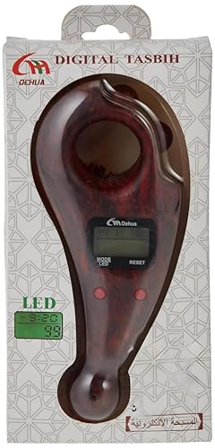 Generic - عداد تسبيح رقمي بشاشة LED من ديهوا، عداد الكتروني بلمسة نهائية خشبية مع شرابة حمراء، عداد خرز للصلاة - مثالي للذكر اليومي والتركيز الروحي