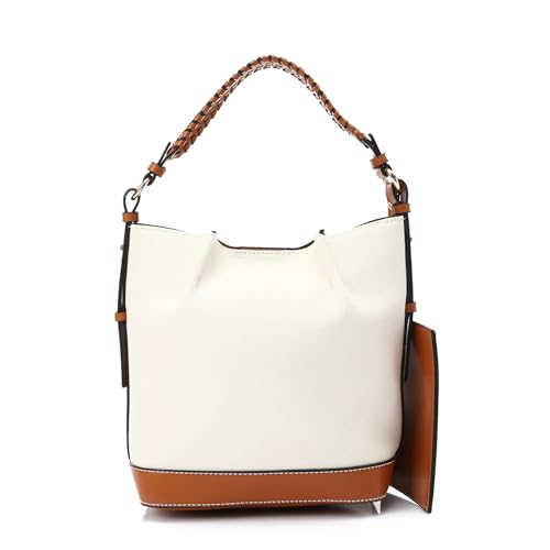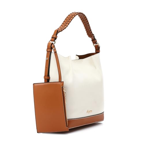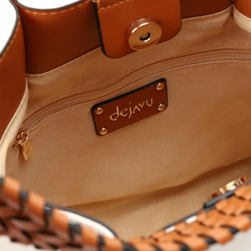 dejAVU - ديجافو شنطة يد سادة بمقبض مضفر للنساء من ليد-DJTV-014 - اوف وايت وجملي، لون جملي، مقاس واحد