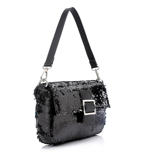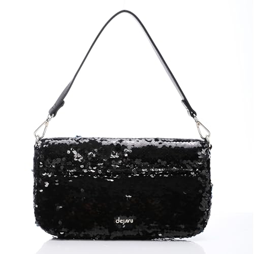 dejAVU - شنطة كتف بأزرار كبس للنساء من ديجافو، LID-DVTF-051، أسود