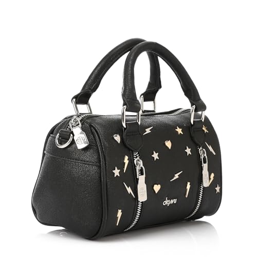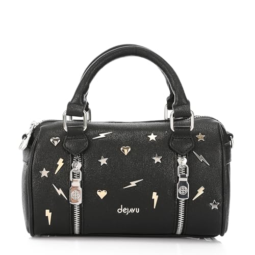 dejAVU - شنطة بيد علوية من الجلد المنسوج للنساء من ديجافو، لون أسود، مقاس واحد، موديل LID-DVTV-018