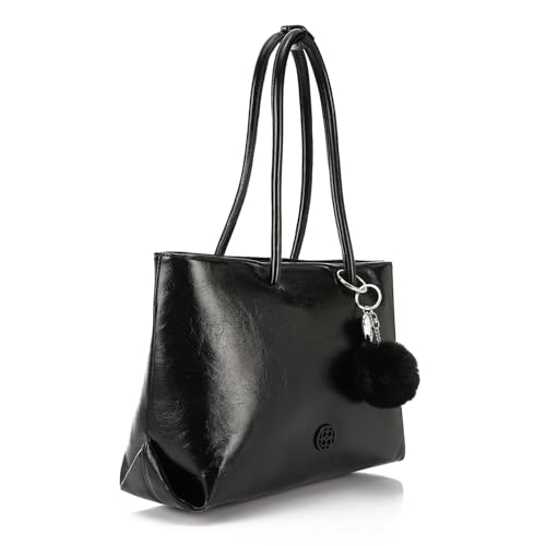 dejAVU - شنطة كتف منسوجة مع سلسلة مفاتيح مزخرفة للنساء من ديجافو - لون أسود، مقاس واحد، LID-DVTV-027