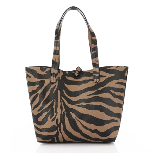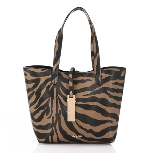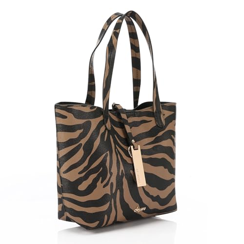dejAVU - شنطة كتف منسوجة بإغلاق مغناطيسي للنساء من ديجافو، موديل LID-DVTV-028 - بني وأسود، متعددة الألوان، مقاس واحد