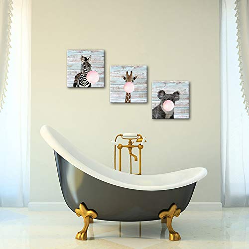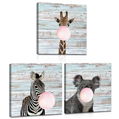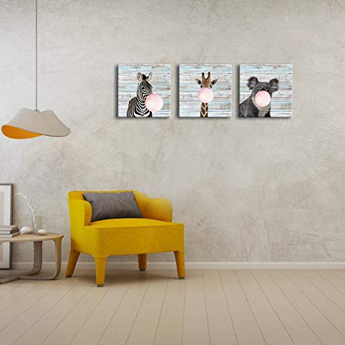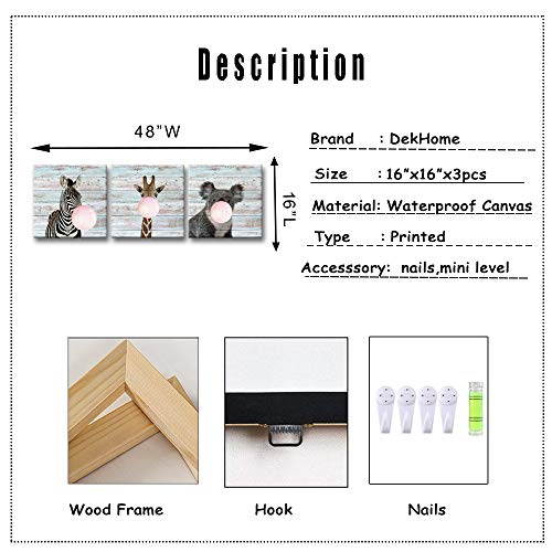DekHome - مجموعة اللوحات الفنية الجدارية على شكل حيوانات وبالونات لديكور الحضانة بتصميم حمار وحشي وزرافة وكوالا، لوحة خلفية خشبية بإطار ممتد لتزيين غرفة الأطفال وغرفة المعيشة، 40 × 40 سم × 3 قطع من ديك هوم