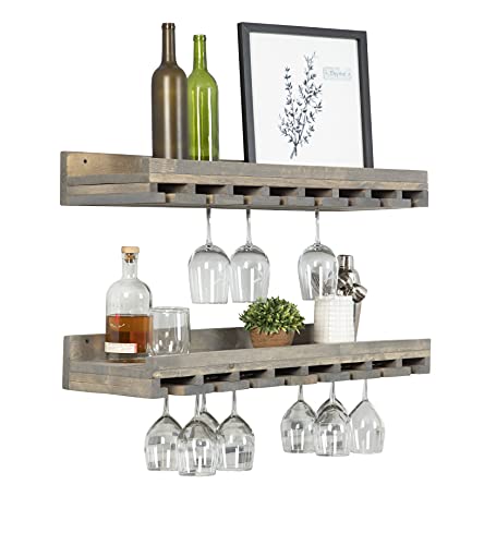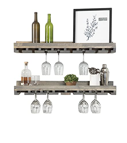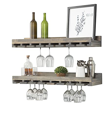 Del Hutson Designs - ديل هوتسون ديزاينز رف يثبت على الحائط مصنوع يدويا من خشب الصنوبر الطبيعي الصلب مقاس 36 انش من راستيك لوكس، مجموعة من قطعتين، رمادي