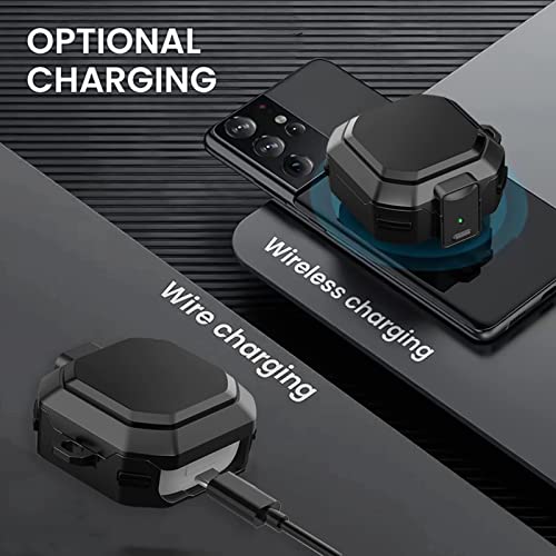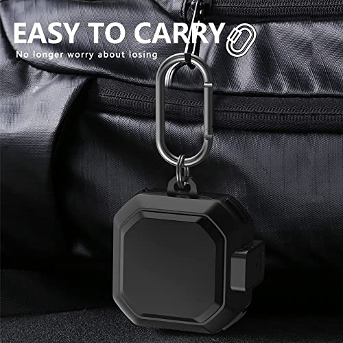 DELFINO - جراب صلب ارمور متين مضاد للصدمات من البولي كربونات مع قفل امان وسلسلة مفاتيح/اربطة لسماعات سامسونج جالاكسي بادز برو (اسود)