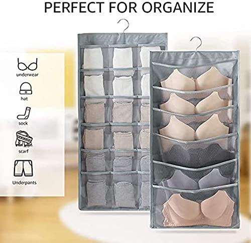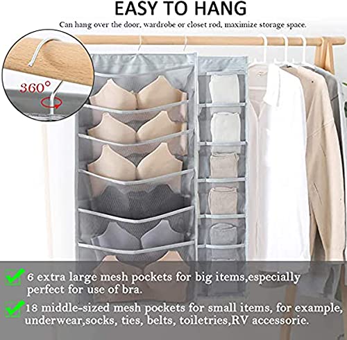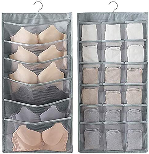 Spaceshoop - منظم خزانة معلق على الوجهين للملابس الداخلية، والشرابات النسائية، وحمالات الصدر والشرابات، بجيوب شبكية وشماعات معدنية، منظم خزانة معلق مع جيوب شبكية من كاستويف