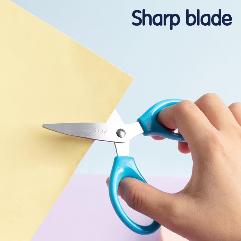 deli - مقص EM700 بطرف دائري مع غطاء للشفرات للأطفال من ديلي، مقاس 13سم، لون وردي وأزرق، طقم من قطعتين