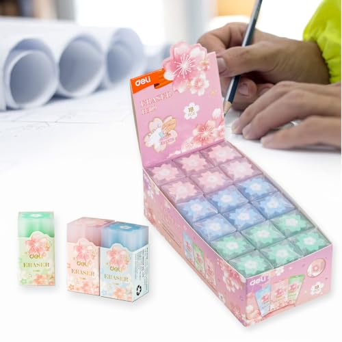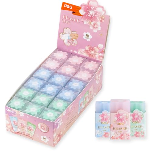 deli - عبوة من 18 ممحاة، طراز ساكورا ساسافراس من ديلي