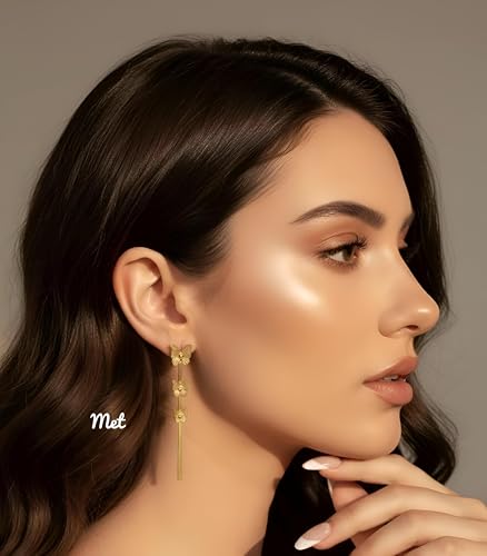 Generic - اقراط رقيقة على شكل فراشة - اقراط خفيفة الوزن من الستانلس ستيل مع زخارف فراشة ذهبية، غير مزعجة وعصرية، هدية مثالية للفتيات والنساء اللواتي يبحثن عن الأناقة الرقيقة.