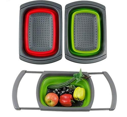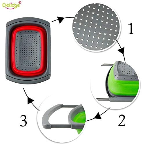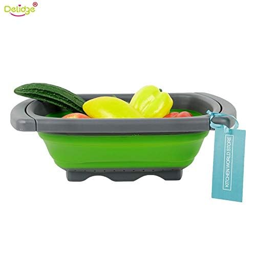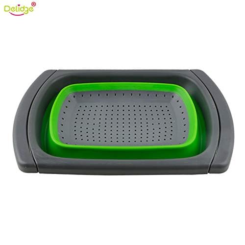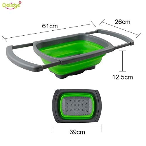 Delidge - سلة تصريف قابلة للطي من السيليكون من ديلج، مصفاة قابلة للتعديل والطي لغسل الخضروات والفواكه وأدوات المطبخ، قطعة واحدة