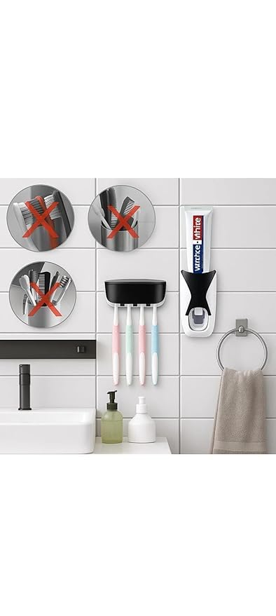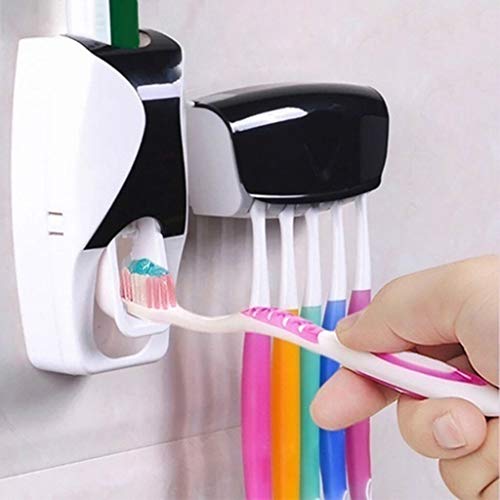 Delidge - موزع معجون أسنان أوتوماتيكي مع حامل فرشاة أسنان بتصميم يثبت على الجدار من ديلج، عصارة معجون أسنان مع 5 مجموعات من حوامل فرش الأسنان