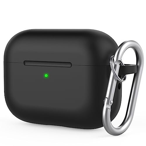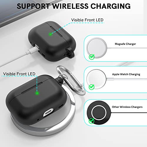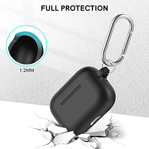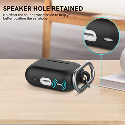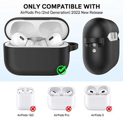 Delidigi - ديليديجي حافظة ايربودز برو 2 2022 غطاء حماية رفيع للغاية من السيليكون لكامل الجسم مع حلقة تعليق لسماعات الجيل الثاني اسود سيليكون معدن