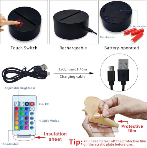 - [مفتاح لمس بسيط ومريح]: هذا المصباح الليلي الوهمي ثلاثي الأبعاد، مفتاح لمس بسيط ومريح، بينما يمكن استخدام وضع مفتاح التحكم عن بعد لتخصيص تجربة الإضاءة. ما عليك سوى استخدام جهاز التحكم عن بعد ويمكن للأضواء التبديل بين الألوان، وضبط الجو بسهولة ليناسب تفضيلاتك.