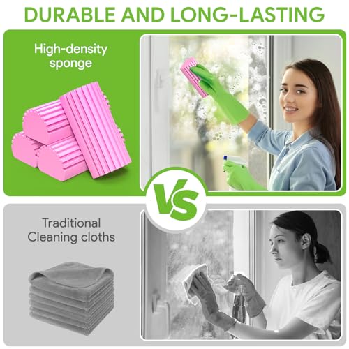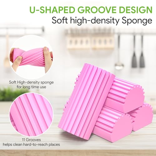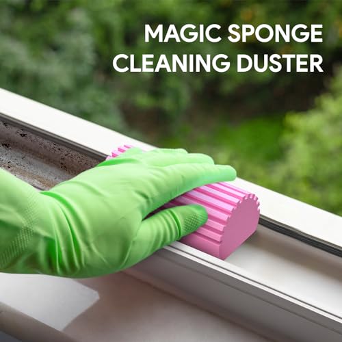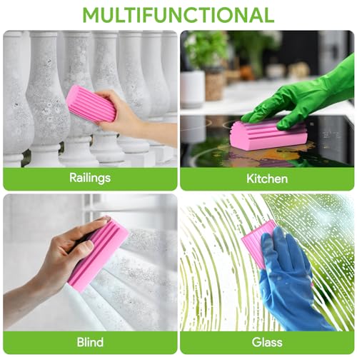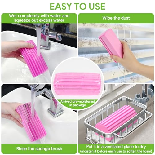 DELUX - اسفنجة تنظيف رطب من 4 قطع، فرشاة تنظيف اسفنجية، منفضة غبار لتنظيف الستائر وشبكة العنكبوت والزجاج والجدران المبلطة وفتحات التهوية والقضبان والمرايا وفتحات مسارات النوافذ وألواح القاعدة والأثاث