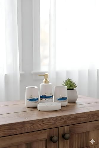 Generic - مجموعة حمام فاخرة - مجموعة كاملة من مستلزمات الحمام بما في ذلك حوض غسيل ناعم الملمس وموزع صابون أنيق، جميعها مصممة لإضفاء الفخامة والراحة على منزلك