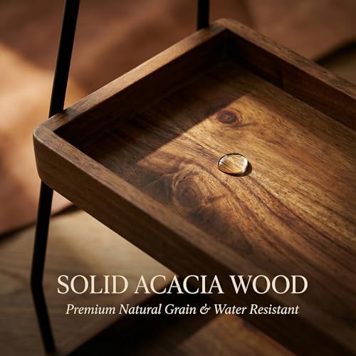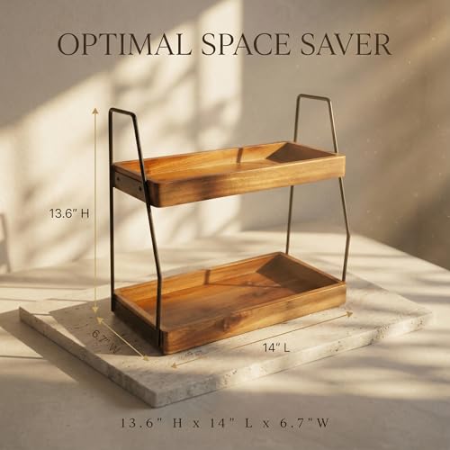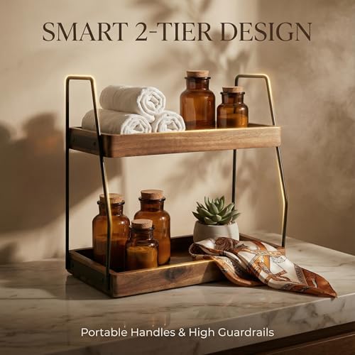 Demigo - منظم منضدة الحمام اكاسيا، رف خشبي قائم من طبقتين، رف تخزين لسطح الطاولة لتنظيم الحمام والمطبخ والمكتب ومستحضرات التجميل والشرفة من ديميجو
