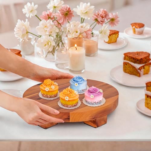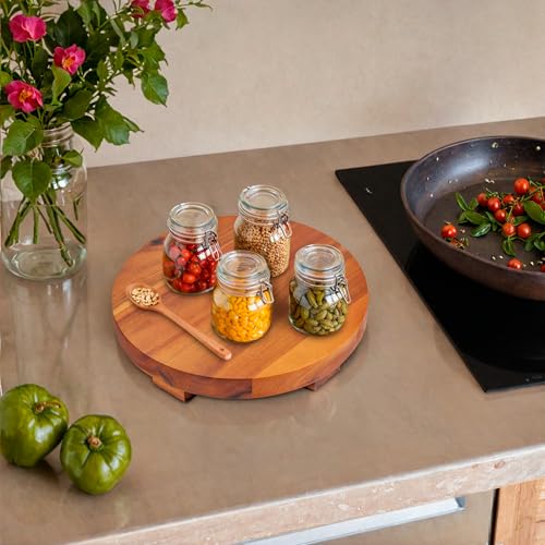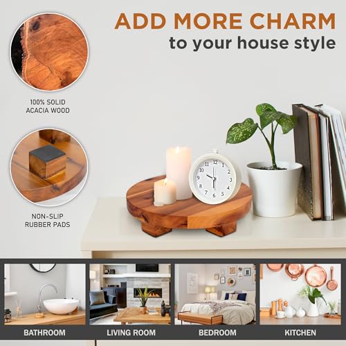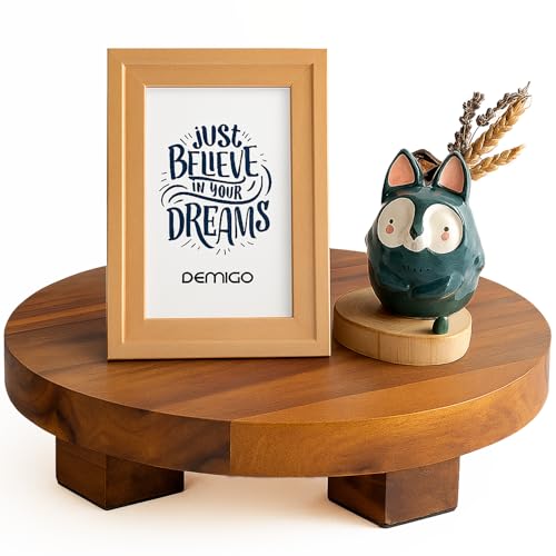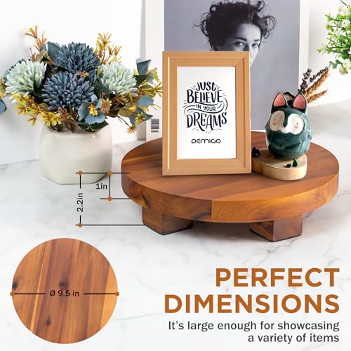 Demigo - لوح رفع دائري من خشب الاكاسيا الطبيعي من ديميجو، حامل نباتات المزرعة مقاس 24 سم، حامل عرض متعدد الأغراض للصابون والنباتات والشموع وسطح الطاولة والمطبخ والحمام