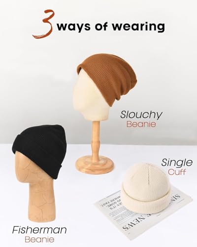 DENIMHOLIC - قبعة شتوية للنساء والرجال، قبعة صوفية للنساء، قبعة بيني للنساء، قبعات بيني محبوكة، قبعة بأساور مطوية، قبعة تزلج دافئة من دينيمهوليك