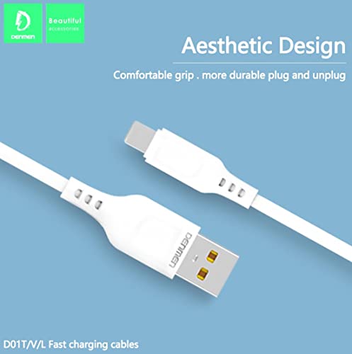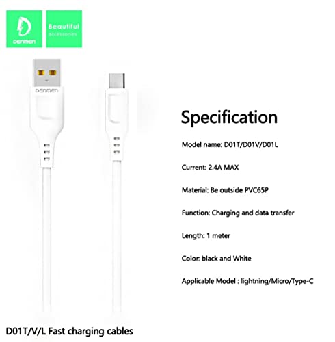 Denmen - دينمن كابل USB لنقل البيانات والشحن السريع بطول 1 متر لاجهزة اندرويد - ابيض - D01V