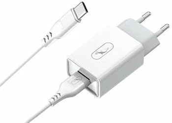 - شاحن من دينمن بتقنية USB، متوافق مع الأجهزة ذات منفذ تايب سي يو إس بي، مع كابل تايب سي يو إس بي وقوة 2.4 أمبير-ابيض