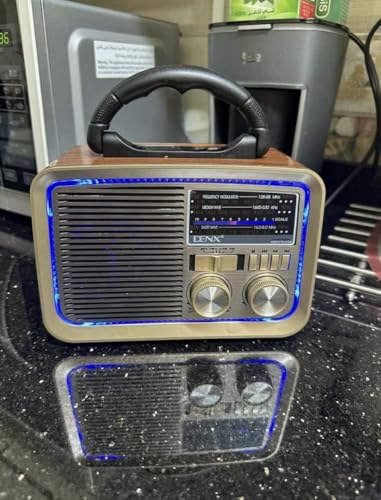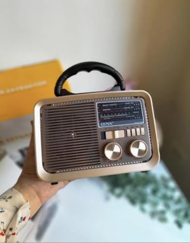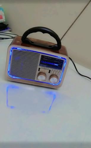 Generic - DENX راديو كلاسيكي بلوتوث مع إضاءة LED، كشاف جانبي، مشغل قرآن كريم، تصميم ريترو محمول مع مقبض