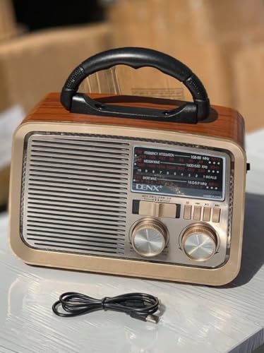 - تصميم كلاسيكي عتيق: راديو DENX بتصميم ريترو أنيق مع إطار خشبي فاخر ومقبض جلدي للحمل يجمع بين الأصالة والعصرية