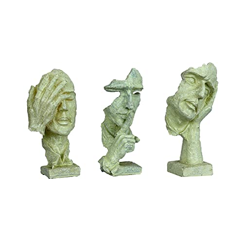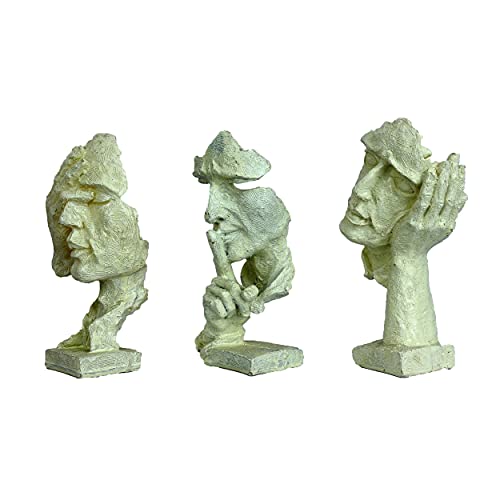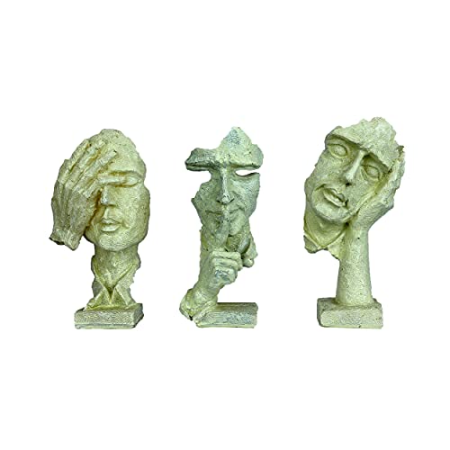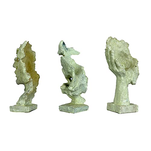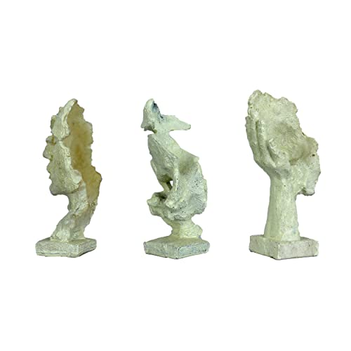DEQUERA - تمثال وجه بشري بيد على فمه لديكور المنزل، قطعة زينة للغرف والطاولات، تمثال بتصميم أثري قديم من ديكويرا®، لون أبيض (أبيض)
