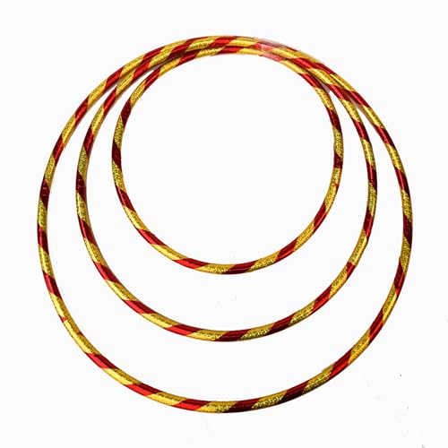 DERBY SPORT - طوق هولا هوب مزخرف من ديربي سبورت، 3 قطع، تصميم لامع باللونين الذهبي والأحمر