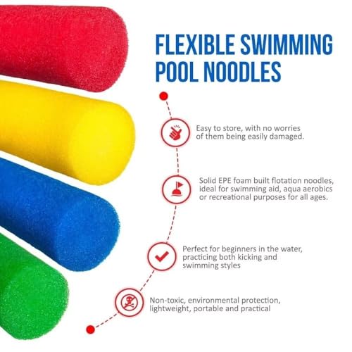 - مجموعة من 6 نودلز فوم لحمام السباحة مصممة للاستخدام الجماعي الكبير، فوم ايفا عالي الجودة يضمن الطفو القوي ومقاومة للماء، سطح ناعم يسمح بالاستخدام الآمن للأطفال والكبار، اللون الأخضر يوفر رؤية واضحة في بيئات حمام السباحة، مثالية لدروس السباحة واللياقة المائية واللعب الترفيهي في حمام السباحة