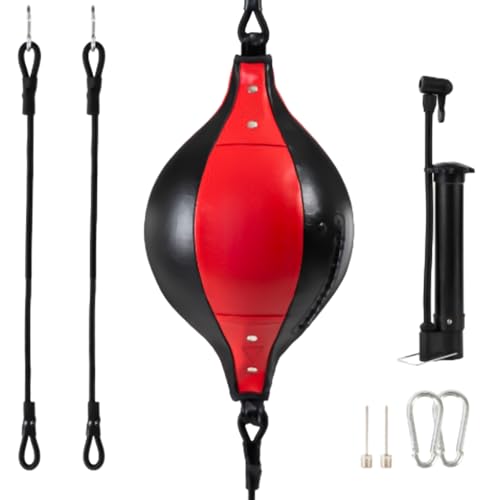 - كرة ملاكمة سريعة باللون الأحمر للتفاعل والتدريب السريع تحسن التنسيق بين اليد والعين والتوقيت، مناسبة للملاكمة والكيك بوكسينغ وفنون الدفاع عن النفس. هيكل مطاطي متين لللكمات المتكررة، توفر الحبال المرنة ارتدادًا سريعًا أثناء التدريبات