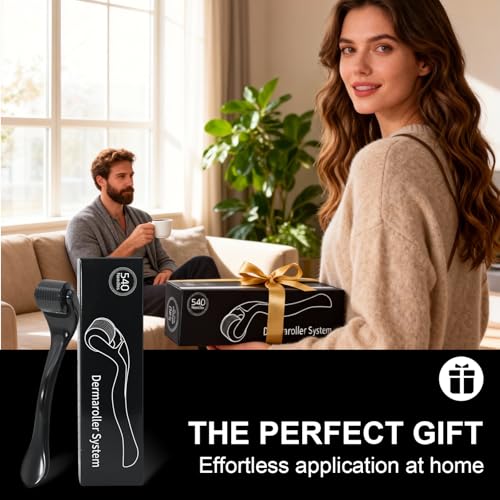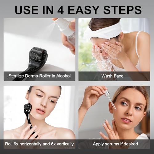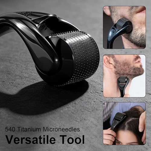 YANVIPERISK - ديرما رولر 540 ستانلس ستيل اسود ميكرونيدلينج رولر للعناية ببشرة الوجه للاستخدام المنزلي لأدوات تدليك الوجه