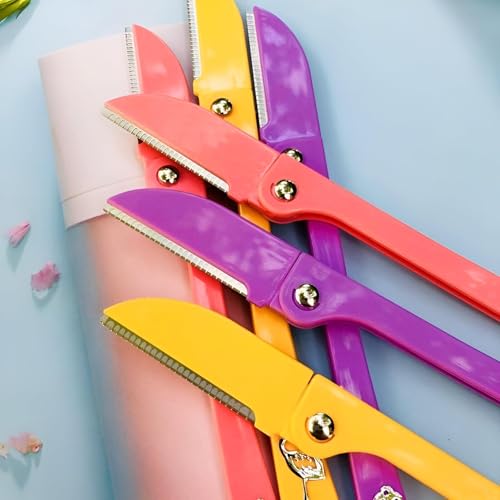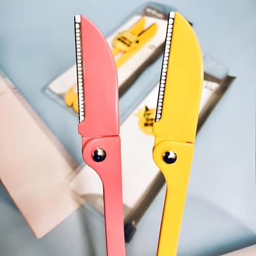 Generic - شفرات حلاقة ديرمابلانينج، مجموعة أدوات حواجب قابلة للطي للنساء من 3 قطع، شفرات ملونة بلون وردي وأرجواني وأصفر، بطول 15 سم لإزالة شعر الوجه بلطف