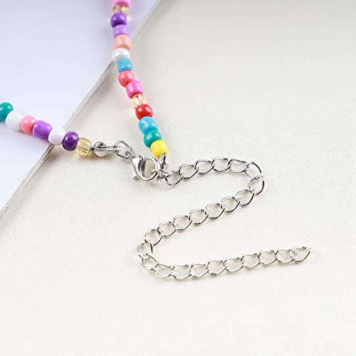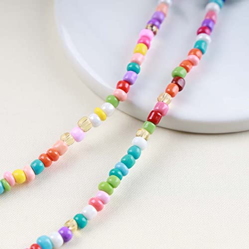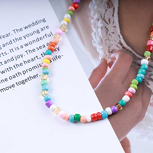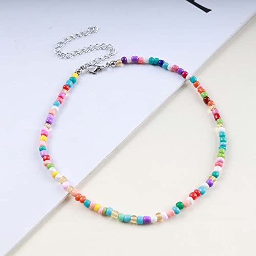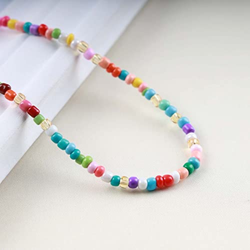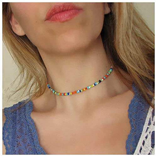 Dervivea - سلسلة خرزية بتصميم قوس قزح بوهيمي من ديرفيفيا طوق ضيق بخرز شكل بذور خرزات ملونة للشاطئ خرزي متعدد الألوان مجوهرات للنساء والبنات