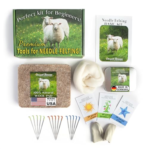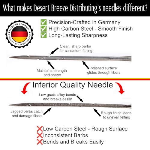 Desert Breeze Distributing - مجموعة إبر تلبيد من الأدوات الأساسية للتلبيد بالصوف للمبتدئين والكبار من 15 إبرة تلبيد جروز بيكرت مع وسادة صوف وواقيات أصابع جلدية وعلبة تخزين من ديزيرت بريز ديستربيوتينج